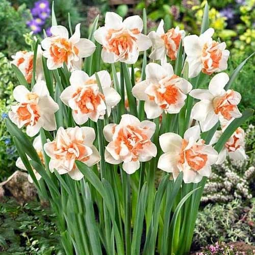 Нарцис махровий Репліт - один з найпривабливіших махрових сортів. Привертає увагу великими багатошаровими квітками, гофрованими пелюстками лососево-рожевого і кремового кольору. Прохолодною весною квіти забарвлені в більш помаранчевий колір, а коли стає тепліше, стають пастельно-рожевими. Ідеально підходить для сільських, натуралістичних, кам'янистих або англійських садів. великі квіти важчі за поодинокі, тому варто знайти для рослин місце, де вони будуть захищені від сильного вітру і дощу. Крім красивого зовнішнього вигляду, вони ще й видають приємний запах.