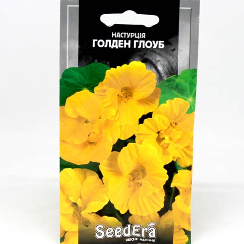 Настурція Голден Глоуб – чарівна невисока рослина (близько 25 см), з величезними золотистими квітами. Рослина прекрасно росте в півтіні і на сонці, може використовуватися для прикраси клумб, рабаток, балконних ящиків та вазонів. Килим квітучої настурції ефектно виглядає на передньому плані міксбордерів з однорічників і багаторічників. Термін цвітіння – з червня до вересня.