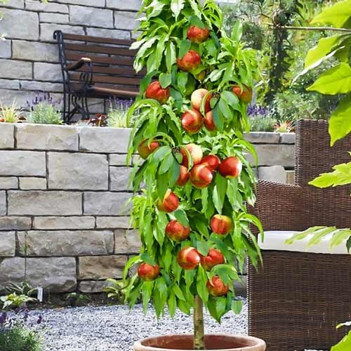 Нектарин колоновидний Містер Персі – карликовий сорт середнього терміну дозрівання, плоди знімають в серпні. Висота дерева не перевищує два метри. На ньому формується до 8 кг голоплодних персиків. Шкірка пофарбована в насичений жовтий відтінок з яскравим карміновим бочком. Плоди солодкі та лежкі, добре транспортуються перші 5 днів після збору.