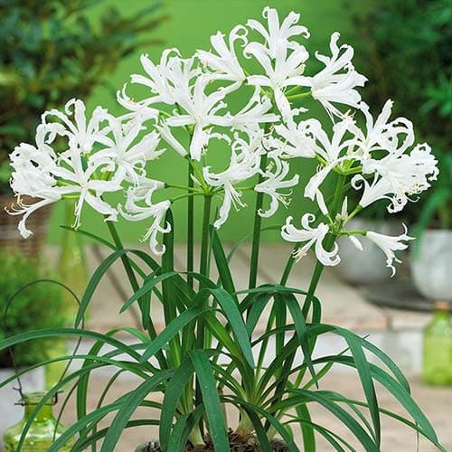 Неріне Боудена Альба (Nerine Bowdenii Alba) – цибулинна квітка, яка відноситься до сімейства амарилісових. У неї незвичайний зовнішній вигляд. Висота стебел сягає 50 см. На їх верхівках формуються бутони із білосніжними пелюстками, закрученими назовні. За рахунок чисельності квітів рослина нагадує святковий салют. Вона непогано росте на ділянках, а також культивується як домашня рослина. У зрізку стоїть до трьох тижнів.