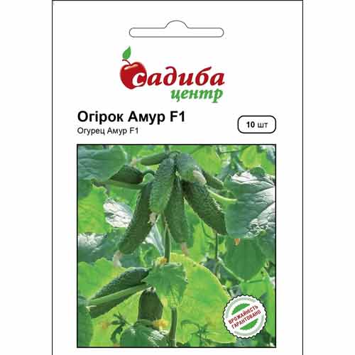 Огірок Амур F1 - це високоврожайний ранній самозапильний гібрид від голландської селекційної компанії Bejo Zaden. Цей гібрид поєднує високу скоростиглість і утворення на одному вузлі до 8 корнішонів, що робить його улюбленим серед дачників і фермерів. Термін вегетації 40-45 днів. Плоди Амур F1 однорідні, з легкими шпильками, однорідного зеленого кольору. Відрізняються тонкою шкіркою і невеликою насіннєвою камерою. При дозріванні не жовтіють і не гірчать. Плоди мають відмінний товарний вигляд. Огірок Амур однаково смачний під час засолювання і консервування. Гібрид має генетичну стійкість до високих температур, повітряної посухи і борошнистої роси, толерантний до переносопорозу.