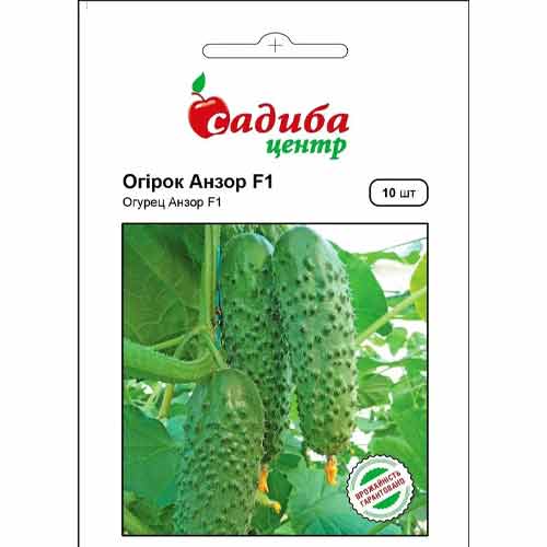 Огірок Анзор F1 - ультраранній партенокарпічний гібрид. Термін дозрівання 40-42 дні. Підходить для вирощування в першому і другому обороті. Рослина з потужною кореневою системою, швидко регенерує після екстремальних стресових умов. Плоди однорідні, циліндричні, темно-зеленого забарвлення, не жовтіють, з маленькою насіннєвою камерою і тонкою шкіркою, без гіркоти. Відзначаються чудовими смаковими якостями та добре транспортуються. Використовують для свіжого ринку, маринування та консервування.