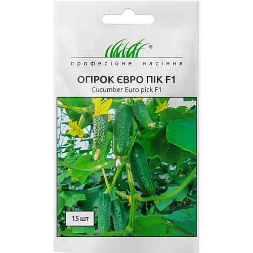 Огірок “Євро пік” F1 – насіння середньораннього партенокарпічного гібриду огірка корнішонного типу, насичено зеленого кольору. У плодів добре виражена горбкуватість, дуже хрусткі і солодкі на смак. Насіння дає високий урожай товарної продукції.