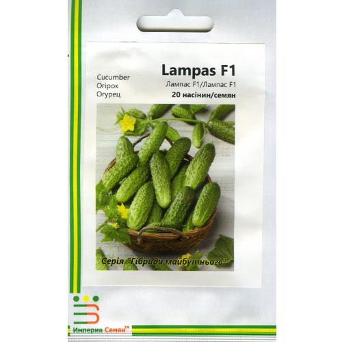 Огірок Лампас F1 - призначений для всесезонного вирощування як у відкритому, так і у закруті грунту. Плоди вирівняні, темно-зеленого кольору, з маленькою насіннєвою камерою. Має наддовгий період плодоношення.
