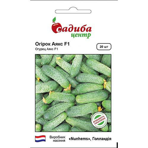 Огірок Аякс F1 - ранньостиглий гібрид з жіночим типом цвітіння. Перші плоди можна збирати вже на 42-44 день. Потужна рослина належить до відкритого типу, формує однорідні плоди темно-зеленого відтінку і з білими шипами. Максимальна довжина плодів - до 12 сантиметрів. Ви можете замовити насіння огірка Аякс F1 в нашому інтернет-магазині за найвигіднішими цінами.