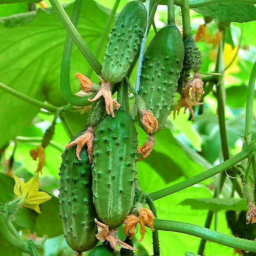 Ранньостиглий (46-48 днів). Зеленці зелені, з короткими освітленим смугами, довжиною 9-11 см, масою 80-100 г, великогорбисті, чорношипі, щільні, хрусткі, солодкі. Рекомендовано для вживання у свіжому вигляді, для засолювання та консервування.