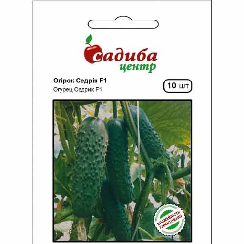 Огірок Седрік - ранньостиглий гібридний сорт, якому не потрібне запилення комахами. Рослина відрізняється середньою гіллястістю, жіночим типом цвітіння і високою продуктивністю. Збирати врожай можна вже через 40-45 днів від перших сходів. Довжина огірків максимум досягає 14 см. У них темно-зелене забарвлення шкірки зі світлими поздовжніми смугами.
