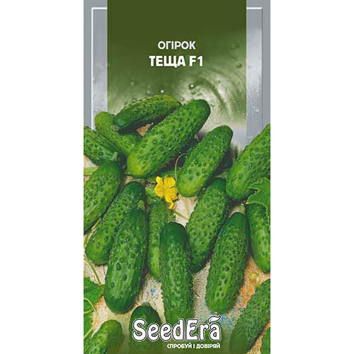 Огірок Теща F1 - скоростиглий, високоврожайний партенокарпічний гібрид жіночого типу цвітіння. Вегетаційний період 44 - 48 днів. Вирощують у відкритому ґрунті та плівкових теплицях. Довжина огірка 11 - 13 см. Вага 100 - 120 г. Плоди циліндричної, овальної форми, витягнуті. Горбкуватий, бурошипий. Смак соковитий, без ноток гіркоти. Гібрид холодостійкий, стійкий до основних захворювань огірків. Використовується для свіжого вживання, консервації і маринування.