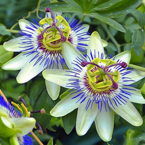 Пасифлора Вайт Блю - унікальна кучерява рослина. Цінується не лише за свою декоративність, а й сприятливий вплив на надмірно емоційних людей. Допомагає при нервових розладах (з екстракту пасифлори готують відомий засіб Ново-пасит), очищає повітря, використовується у парфумерії. Замовити саджанці пасифлори Вайт Блю можна у нашому магазині з доставкою поштою.
