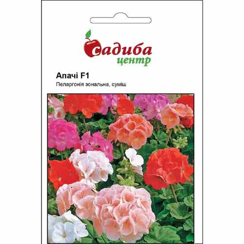 Пеларгонія Апачі F1 – це компактна рослина, росте швидко, цвіте рясно. Висота кущиків, які ростуть у саду досягає 30-35 см, у горщиках 15-20 см. Ширина кущиків – 25-30 см. Квітки великі, різноманітного забарвлення, зібрані в зонтикоподібні суцвіття.