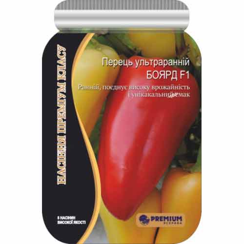 Перець Боярд F1 - ранній гібрид конічної форми відомий завдяки своїм соковитим плодам і високій врожайності. В процесі дозрівання перці змінюють свій колір з ніжно-жовтого на яскраво-червоний. Рослина відмінно підходить для висадки у відкритий ґрунт. Замовляйте насіння в нашому інтернет-магазині зараз, щоб вже дуже скоро насолоджуватися власним урожаєм.
