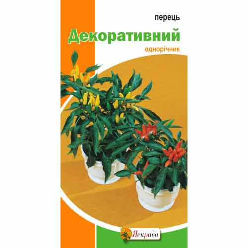 Перець декоративний – суперкомпактний чагарничок з жовтими носиками перчинок, які виглядають із зеленого листя. Висота рослини не перевищує 30 см. Плодоносить рясно – при належному догляді культура буквально вкрита крихітними перчинками не більше 5 см завдовжки. Сорт відноситься до скоростиглих, перші плоди з'являються вже через два місяці. Купуйте насіння декоративного перцю в інтернет-магазині «GradinaMax» – він чудово прикрасить інтер'єр вашої кухні!