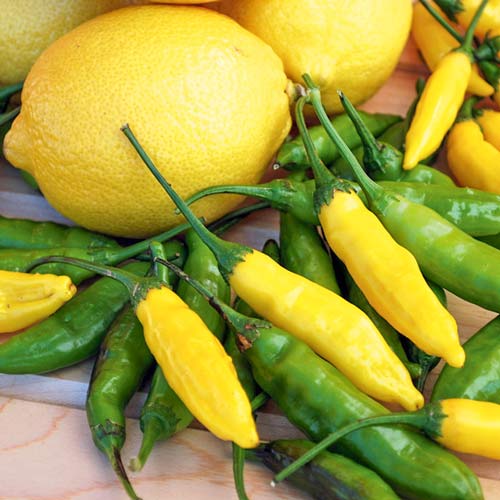 Перець гострий Гарячий лимон – средньорослий чагарник 50 см заввишки. Він відноситься до середньостиглих, урожай збирають через 90-95 днів після сходу. Перчики-конуси важать до 50 г, на кущі їх може сформуватися біля 40 штук. У технічній стиглості вони ніжно-зелені, а в біологічній – насиченого лимонного відтінку. Смакує добре, з нотками лимону. Купуйте насіння гострого перцю Гарячий лимон – він прекрасно зростає в закритому й відкритому ґрунті!