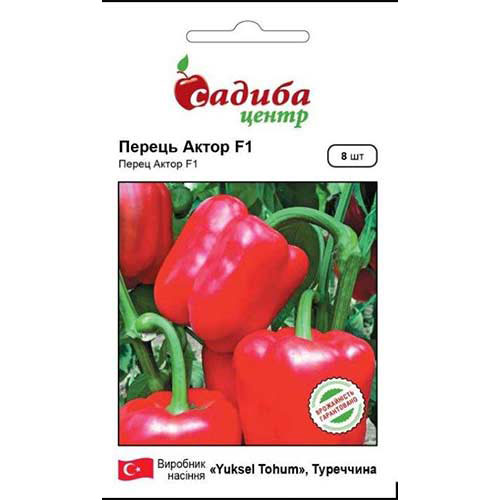 Перець солодкий Актор - гібридний сорт раннього терміну дозрівання. Плоди у рослини червоні, чотирикамерні. Маса перців - від 300 до 330 г, довжина не перевищує 10 см, а діаметр - 7 см. Плоди не страждають від мікротріщин і довго зберігають товарний вигляд.