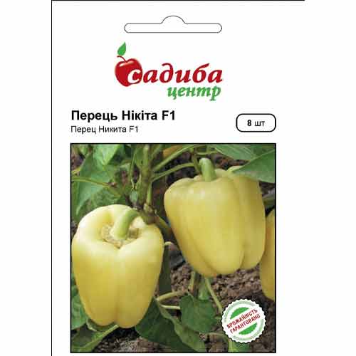 Перець солодкий Микита F1 - універсальний гібрид, виведений французькими селекціонерами. Перші плоди дозрівають вже на 70 день після висадки розсади. Володіють кубовидною формою і яскравим забарвленням. На одному кущі в середньому формується від 8 до 12 рівних і красивих перчиків. При дотриманні всіх правил агротехніки вони можуть досягати до 200 грамів. Замовляйте насіння перцю цього сорту в нашому інтернет-магазині з доставкою поштою і без передоплати.