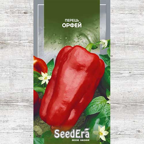 Перець солодкий Орфей - середньостиглий сорт з компактними кущами висотою 45-60 см, що не потребують підв’язування. Завдяки цьому його зручно вирощувати і в теплицях, і на відкритому ґрунті. Плоди подовгасті, кубовидні, яскраво-червоного забарвлення, довжиною до 10-15 см і вагою 120-150 г. В цього сорту рекордний вміст вітаміну С, він сприяє прискоренню метаболізму та має низьку калорійність.