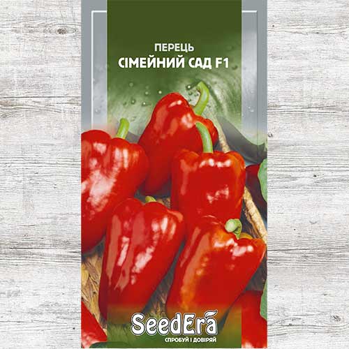 Перець солодкий Сімейний Сад F1 - один з найулюбленіших сортів солодкого перцю серед дорослих і дітей. Можна вирощувати у відкритому ґрунті або теплиці, використовуючи розсадний спосіб. Гібрид детермінантного типу володіє потужним листовим апаратом, який відмінно приховує плоди від яскравого сонця.