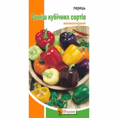 Перець солодкий Суміш кубічних сортів – це суміш овочів оригінальної кубоподібної форми та різного забарвлення. Товстостінні соковиті перці можуть бути лимонними, червоними, фіолетовими й апельсиновими. Чудово виглядають у холодних закусках, других стравах, також гарні для заморожування, засолювання та консервування.