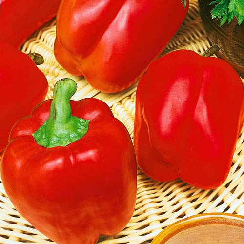 Перець солодкий Топ Гриль – сорт, який дозріває за 110-118 днів. Чагарнички середні, до 80 см заввишки. На них формуються карміново-червоні плоди масою близько 100 г. Перці сплюснуті, віддалено нагадують помідори, з прекрасним смаком та характерним ароматом. Вони чудово смакують в свіжому вигляді й домашніх заготовках. Купуйте насіння солодкого перцю Топ Гриль та знімайте високий врожай!