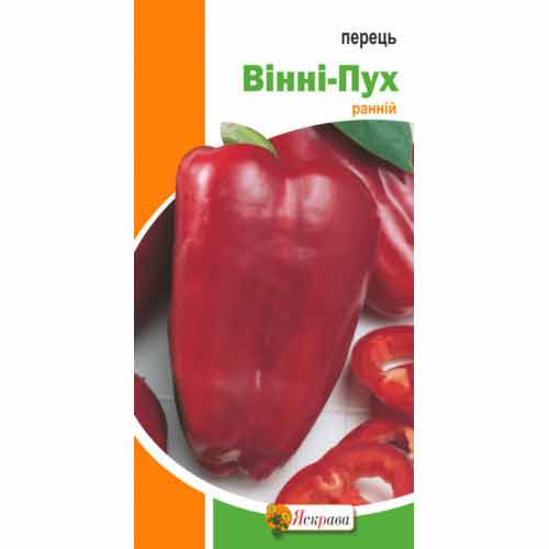 Перець Вінні-Пух – сорт із терміном дозрівання від 120 до 130 діб. Невисокий (25-30 см) штамбовий кущ дає врожай у вигляді конусоподібних плодів вагою до 60 г. Шкірка овочу гладенька, насиченого червоного кольору. Соковитий ароматний м'якуш товщиною до 7 мм дуже приємний на смак. Для отримання раннього врожаю рекомендується вирощувати в теплицях.