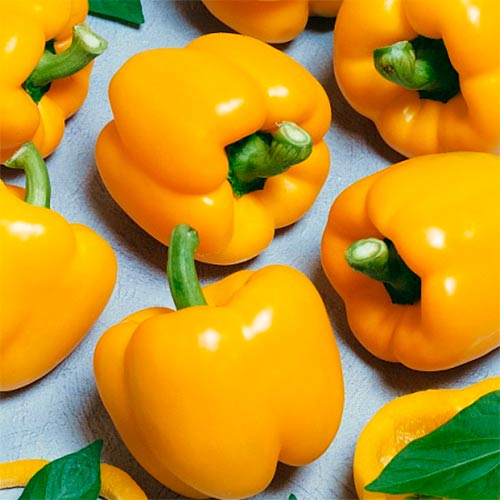 Солодкий перець Золотий фазан – сорт середньораннього дозрівання. Вегетаційний період триває максимум 145 днів. Кущ досить компактний, оскільки має висоту 40-60 см, напівштамбовий. Зрілі плоди великі, вага – 150-300 г. Форму мають плескату. У стиглому вигляді перець набуває жовто-помаранчевого кольору. Товщина стінок – 8-9 мм. М'якоть всередині солодка, дає приємний аромат. Через цікавий смак плоди додають в різні страви та консервують. Купуйте насіння перцю солодкого Золотий фазан поштою і насолодіться свіжим ароматом плодів!