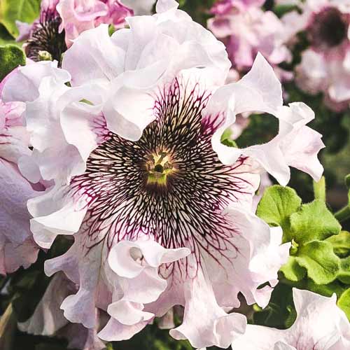 Квіточки цього сорту покривають кущ заввишки 45-55 см, немов ніжні мережива. Вони досягають у діаметрі близько 15 см і дивують своїм забарвленням: світло-рожеві з сіткою фіолетових прожилок. Сорт підходить для прикраси садових клумб і для озеленення балконів, лоджій. Щоб з квітня до листопада милуватися рясним цвітінням, замовте насіння петунії бахромчатої Альба в інтернет-магазині «GradinaMax».