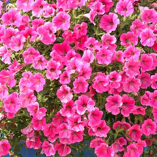 Купуйте насіння петунії Даймонд Роуз F1 — вона відзначається добрим ростом і стійкістю до несприятливих погодних умов. З успіхом використовується в якості ампельної культури. Довжина звисаючих каскадом пагонів — до 100 см. Великі квіти (8-10 см) в рожево-бузковій гамі покривають більше половини його поверхні.