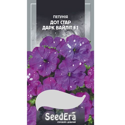 Петунія Дот Стар Дарк Вайлет F1 - зоряне нескінченне небо, яке ховає в собі таємниці Всесвіту - все це про чарівну петунію. Яскраві квітки фіолетового і рожевого відтінку з білими вкрапленнями приковують до себе увагу в кожному саду. Замовляйте насіння петунії в нашому інтернет-магазині, щоб кожен день насолоджуватися її красою.