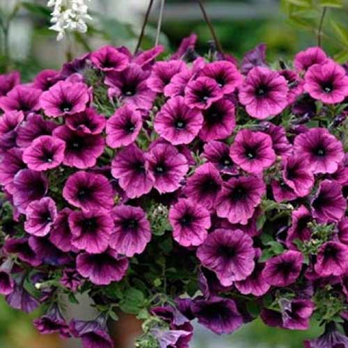 Купуйте насіння петунії Парпл Вельвет F1 — гібрид цінується за стійкість до несприятливих погодних умов. З успіхом використовується в якості ампельної культури (квіткові дерева), для оформлення літників. Килимові квітники, де виконує сольну партію Парпл Вельвет, надзвичайно ефектні.