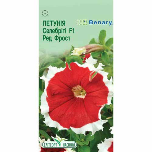 Петунія Селебріті Ред Фрост - популярний гібрид з раннім цвітінням. Рослини компактні, кущисті, добре облиствені, густо вкриті квітами діаметром до 8 см. Цвіте рясно і тривало. Використовують для оформлення клумб, рабаток, у балконних ящиках і контейнерах. Посадка і догляд Вирощують через розсаду. Насіння висівають на поверхню ґрунту, накривають склом, задіюють додаткове освітлення. При температурі 20°С сходи з'являються через 14-20 днів. Пікіровка відбувається у фазі 1 справжнього листка. Рослина невибаглива в догляді, головне не забувати про полив і періодичні підживлення.