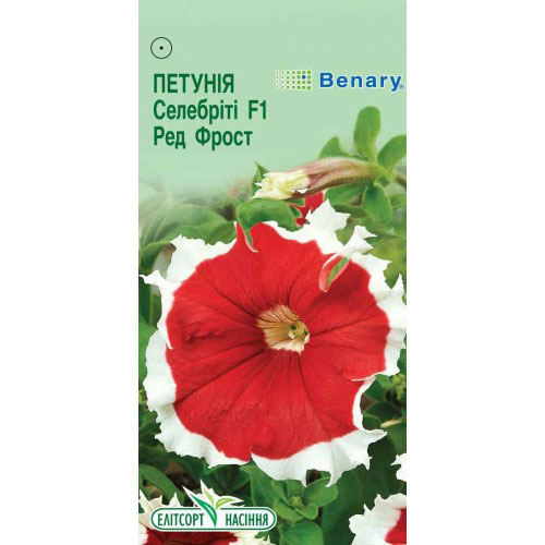 Петунія Селебріті ред фрост - популярний гібрид з раннім цвітінням. Рослини компактні, кущисті, добре облиствені, густо вкриті квітами діаметром до 8 см. Цвіте рясно і тривало. Використовують для оформлення клумб, рабаток, в балконних ящиках і контейнерах.