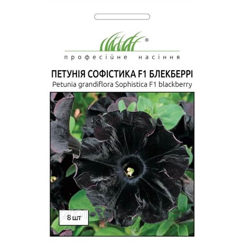 Петунія Софістика Блекберрі F1 – квітка з рідким екзотичним забарвленням бутонів. Оксамитові пелюстки в середині – пурпурно-фіолетові, а по краю стають майже чорними. Культура однорічна, до 40 см заввишки, формує щільні кулясті кущики. Діаметр квіток досягає 8-10 см. Купуйте насіння петунії Софістика Блекберрі F1 й саджайте їх в балконні горщики та вазони. Особливо ефектно квітка виглядатиме у поєднанні з сортами контрастних відтінків.