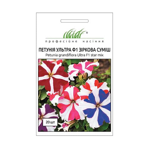 Петунія Ультра зоряна F1 – яскрава, перевірена часом квітка. Бутони-грамофони забарвлені в два контрастні кольори, а їх діаметр сягає 7-9 см. Культура компактна, виростає до 35 см. Бутони розпускаються дружно, постійно, аж до осінніх заморозків. Замовляйте ефектну суміш насіння петунії Ультра зоряна F1 – вона задовольнить всі вимоги як новачків, так і професійних квітникарів.