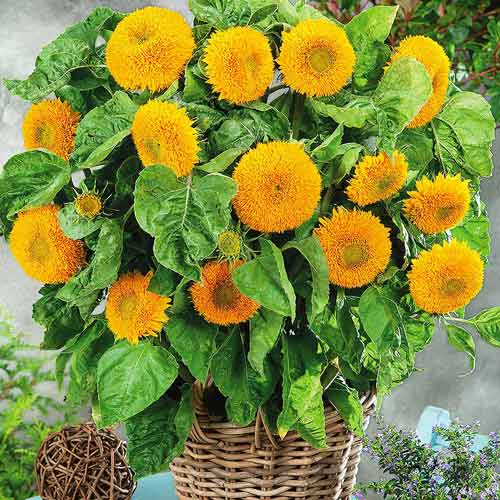 Соняшник декоративний низький — близький родич соняшника олійного, який відрізняється помірною висотою (до 40 см) і махровими жовтими суцвіттями з вузькими пелюстками. Застосовується в декоруванні садової ділянки в сільському стилі.