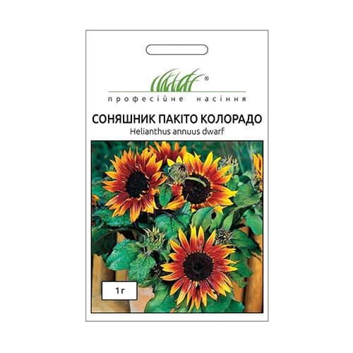 Соняшник Пакіто Колорадо-трав'яниста рослина, компактна, до 60 см заввишки. Суцвіття у вигляді кошики розташоване на самій верхівці міцного стебла. Пелюстки з золотистими краями і більш темною серединою зібрані навколо серцевини кольору темного шоколаду. Посів виконують з кінця квітня по початок травня, закладаючи в лунку по 2 насіння на глибину до 5 см. відстань між рослинами не повинно бути менше 20 см.