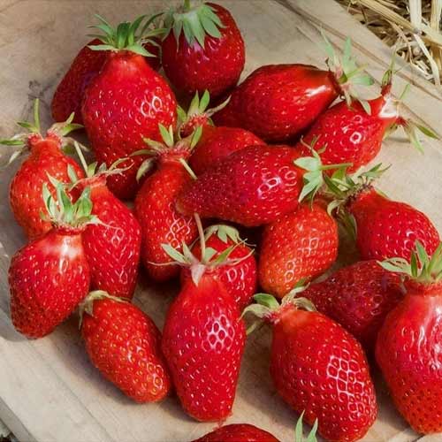 Один із найбільш ранніх сортів. Ягоди з твердою, ароматною, яскраво-червоною м'якоттю, блискучі. За формою довгі, конічні. Сім'янки не заглиблені. Смак приємний, освіжаючий. Ягода дуже солодка з ароматом червоного яблука. Плоди вирівняні, середнього розміру 25г, максимальні екземпляри досягають 30-35г.