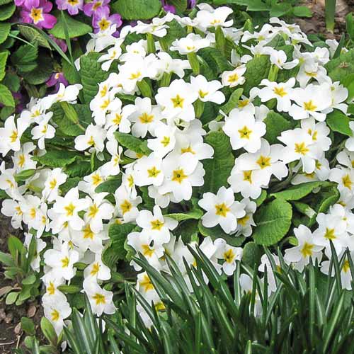 Примула звичайна Вайт – низькорослий багаторічник до 30 см заввишки. Квітки білосніжні із яскравою жовтою серединкою. Розпускаються в першій половині весни, а інколи, коли дозволяє погода та догляд, можуть зацвісти повторно, у вересні. Листя овальне, темного зеленого відтінку з добре вираженою фактурою. Якщо у вас багато ділянок в півтіні, які хотілося б бачити нарядними вже ранньою весною, просто замовте й посадіть саджанці примули звичайної Вайт!