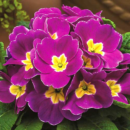 Примула звичайна Віолет – чудовий первоцвіт з незвичайним забарвленням бутонів. Край пелюсток ледве зворушений білою облямівкою, основна площа кольору темного аметиста, серединка жовта з білим кантом. Бутони зібрані в щиткові суцвіття. Зелень велика, овальна, з добре помітною фактурою. Висота кущиків сягає 15-17 см. Цвітіння починається в першій половині весни й триває близько двох місяців. Замовляйте саджанці примули звичайної Віолет – вона добре виглядає в квітниках і клумбах, може культивуватися в горщиках.