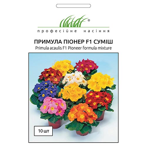 Примула Піонер F1 - ранкоквітуча компактна серія. Висота: у горщику 10-15 см, у саду 15-20 см, ширина 15-20 см. Квіти великого розміру, діаметром 5 см. Чудова вирівняність усередині серії за часом цвітіння. Ідеально підходить для вирощування в горщиках діаметром 6-10 см. Невимоглива рослина, яка має неперевершені декоративні якості. Зацвітає на другий рік, цвітіння продовжується з квітня до червня. Добре росте в півтіні, на удобрених та вологих ґрунтах. Використовується для посадки в бордюрах, рабатках, кам'яних гірках.
