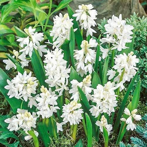 Пушкінія Альба - багаторічна дрібноцибулинна рослина. Для неї характерні білі квітки, що нагадують дзвіночки, які розташовуються на подовжених квітконосах. Він не росте високим, тільки виростає до 15-20 см у висоту. Пушкінія - підходяща рослина для вирощування на рокаріях, невисоких клумбах, квітниках і клумбах. Поряд з хіонодоксою, гіацинтами або крокусами можна створювати винятково красиві композиції з цибулинних рослин. Цвіте рано, часто з початку квітня.