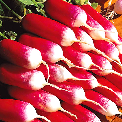 Плоди довгасті, красивої циліндричної форми. Колір яскравий, рубіново-червоний, з білим закінченням біля корінця. М'якоть – неперевершено соковита, білосніжна. Вага плоду 15-30 г.
