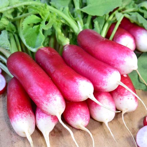Редис Французький сніданок подарує рясний урожай з довгих (до 6 см) циліндричних плодів. Характерне для сорту забарвлення – червоне з білим кінчиком. М'якоть у міру щільна, в ній ви не знайдете пустот, порадує і відсутність гіркоти у смаку. В інтернет-магазині «GradinaMax» ви зможете придбати насіння редису і отримати корисне джерело клітковини і вітамінів групи В.