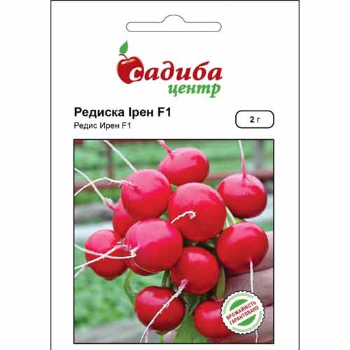 Редис Ірен F1 - ранньостиглий, високоврожайний сорт, призначений для вирощування в закритому грунті в умовах недостатнього освітлення. Період дозрівання 28 - 30 днів. Формує округлі, яскраво-червоні коренеплоди масою 50 - 70 г з маленьким корінцем, які не втрачають колір після миття. Коренеплоди щільні, вирівняні, не схильні до утворення порожнин і розтріскування. Сорт дуже погано переносить надмірну кількість азотних добрив, а так само велику концентрацію органічних добрив в грунті. Використовують для приготування вітамінних, свіжих салатів, закусок, бутербродів і домашньої косметики. Ви можете замовити в нашому інтернет-магазині насіння редису без передоплати.