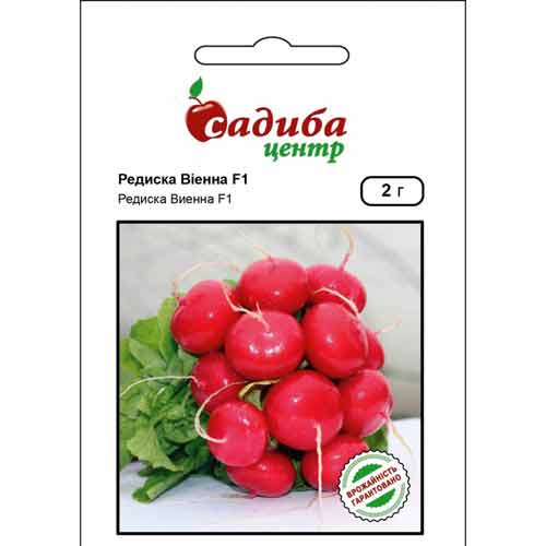 Редис Вієнна F1 - ранній гібрид редиса типу Сора. Період дозрівання 23 - 25 днів. Довжина плоду 50 - 55 мм. Коренеплід з білою щільною хрусткою м'якоттю, в якій не присутні порожнечі, має блискучу тонку рожево-червону шкірку. Гібрид відрізняється стійкістю до появи тріщин на коренеплоді і утворення великої кількості стрілок. Характеризується тривалим терміном рясного плодоношення. Його можна вирощувати весь сезон. Використовують для приготування свіжих салатів, закусок і домашньої косметики. Ви можете замовити в нашому інтернет-магазині насіння редису без передоплати.