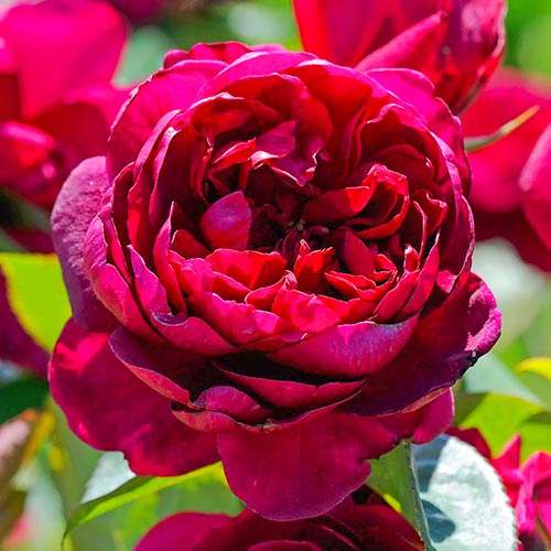Рослина відрізняється яскравими червоними бутонами з виразним фіолетовим відтінком. Форма у них класична, старовинна. Бутони досить великі - ширина квітки, що розпустилася досягає від 10 до 12 см. Розпускаються квіти довго, не поспішаючи. Висота куща пристойна для цього типу троянд - близько 70 см.