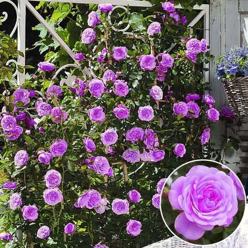 Троянда Блакитна Мрія (Blue Wonder) - плетиста ефектна рослина з піною яскравих бузково-блакитних квітів махрової форми, які зачаровують не тільки зовнішньою красою, а й чудовим ароматом. Кущ досить рослий, висотою 300 - 500 см, шириною куща 200 см. Бузково-блакитні бутони розкриваються і перетворюються на великі махрові квітки діаметром близько 10 см, які виглядають дуже ефектно на тлі зелені листя. Підходить для живоплотів, арок, альтанок, для одиночних посадок.