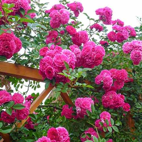 Троянда плетиста Пінк Мушимара – дивовижний сорт для створення казкових куточків у саду. Пишні рожеві квіти вражають вишуканістю форм і тривалим цвітінням. Посадіть цей сорт на своїй ділянці – захват і захоплення від нього вам гарантоване. Висота кущів – до 2 м, за формою зростання вони каскадні. Бутони махрові, рожеві, з легким приємним ароматом. Термін цвітіння – з середини літа до осінніх холодів.
