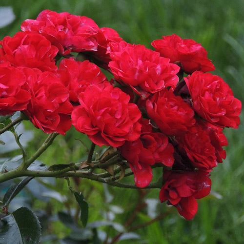 Троянда грунтопокривна Ред Фейрі - сорт, який відрізняється яскравими червоними квітами, зібраними у великі суцвіття. У кожному близько десяти бутончиків. Квіти досить дрібні - кожна в діаметрі від 3 до 5 см. Кущ може бути різної висоти - це залежить від умов вирощування рослини. Мінімальна висота - 40 см, а максимальна становить більше метра (120 см, якщо точніше).