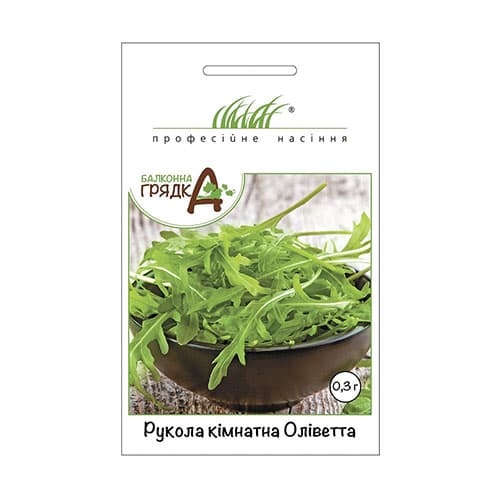 Рукола Оліветта - скоростиглий сорт руколи для вирощування в горщиках на підвіконні або балконі. Термін дозрівання 20-25 днів. Листя тонке, довгасте, з горіхово-гірчичним смаком. При регулярному поливі листя стає ніжним і менше гірчить. Використовується в салатах і як гострий гарнір до м'ясних і рибних страв. Рослина добре росте і в дерев'яних ящиках, і в пластмасових лотках, і в квіткових вазонах. Ґрунт слід обирати або нейтральний, або слаболужний. У ємності для вирощування слід засипати дренажний шар близько 2-3 см. Місце для вирощування руколи має бути добре освітленим, оскільки ця рослина дуже світлолюбна, тому слід досвічувати зелень у похмуру погоду. При вирощуванні в зимовий період бажано продовжити світловий день на 4 години.