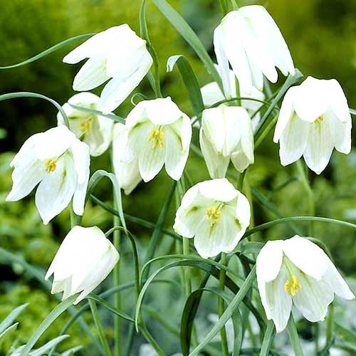 Рябчик (фрітілярія) Мелеагріс Альба - багаторічна цибулинна рослина з ланцетним довгастим листям і ефірними квітками у формі дзвіночків. Виростає до 30 см у висоту до моменту цвітіння, яке припадає на квітень. На кожному стеблі формується по 1-2 квітки з білосніжними пелюстками з жовтою плямою. Квітки досягають 3-4 см у діаметрі і під своєю вагою звисають донизу. Використовується для облямівки клумб, газонів, рокаріїв і квітників. Цибулини також можна садити в горщики і ящики і використовувати для прикраси балконів або патіо.